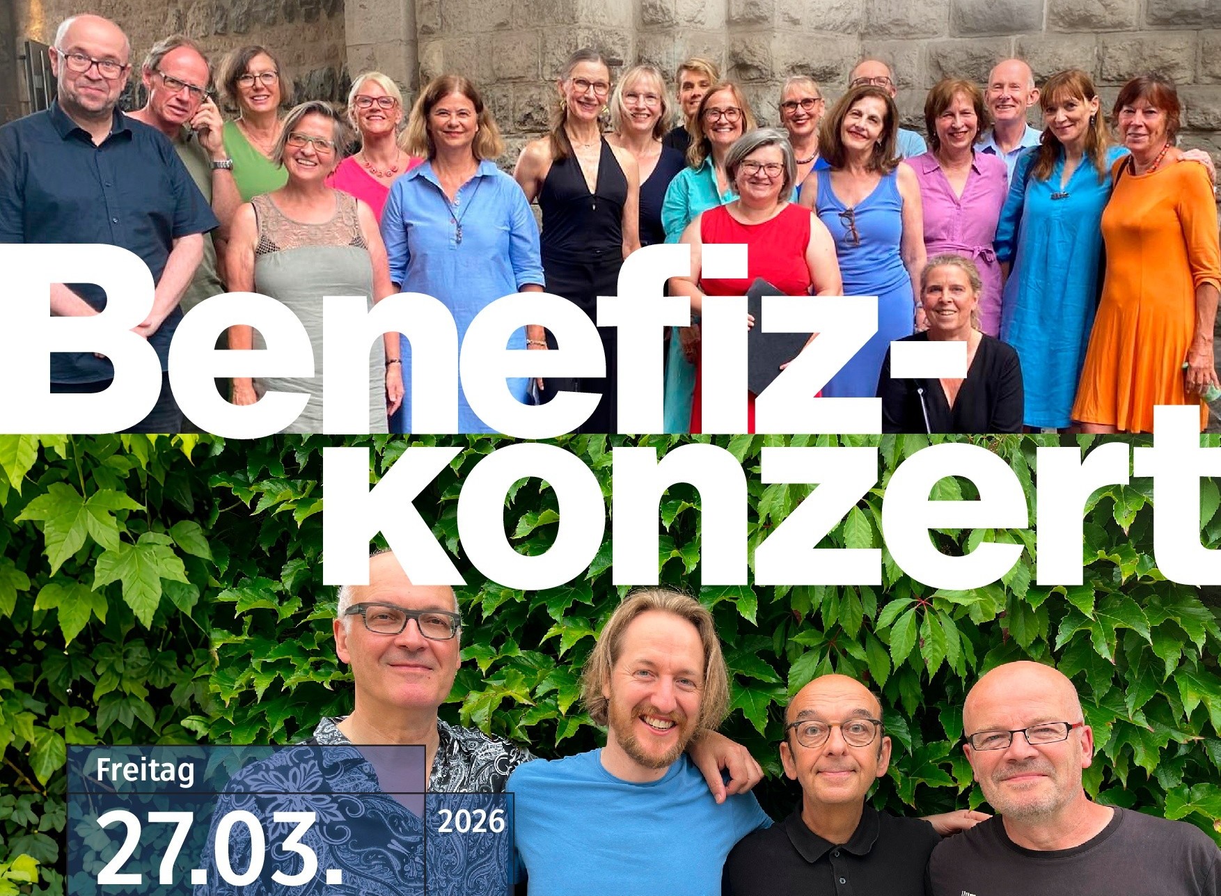 Herzliche Einladung zum Benefizkonzert für die Kindernothilfe e. V. am 27.03.2026, 20:00 Uhr in der Kartäuserkirche. Mit dabei ist unser Chor "Sing to Soul" unter Leitung von Thomas Frerichs sowie die JazzBand "Les Déconstructeurs du Jazz".