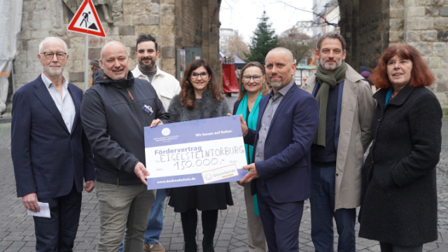 Die Offene Jazz Haus Schule hatte Grund zu feiern: Zum einen die Unterzeichnung des neuen Erbbaurechtsvertrags mit der Stadt Köln, zum anderen den Beginn der Renovierungsarbeiten am Westturm der Eigelsteintorburg. Darum waren zahlreiche Ehrengäste in den Saal der Eigelsteintorburg gekommen, um dieses besondere Ereignis zu feiern. Joscha Oetz, Leitung der OJHS, und Rainer Linke, Vorsitzender der OJHS, begrüßten die Gäste sehr herzlich. Bürgermeisterin Teresa De Bellis-Olinger überbrachte in Vertretung von Oberbürgermeister Torsten Burmester Glückwünsche und Grüße von Rat und Verwaltung der Stadt Köln. Uwe Lohölter, Ortskurator der Deutschen Stiftung Denkmalschutz, überreichte einen symbolischen Scheck über 150.000 € für die Restaurierungsmaßnahmen am Westturm. Die Feierstunde wurde von Musiker*innen mitgestaltet, die aktuell am "Vorstudium Jazz" der Offenen Jazz Haus Schule teilnehmen.