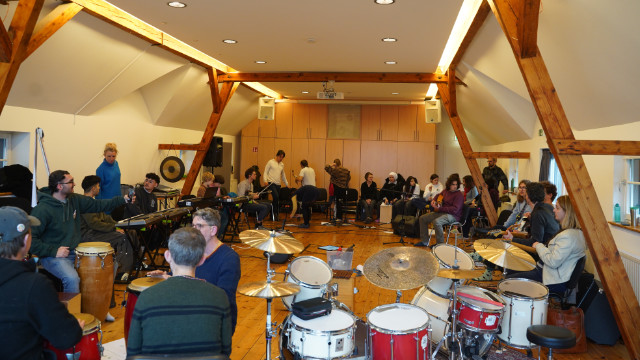 Das inklusive Stadtteilorchester "Sounds of Buchheim" fuhr auch in diesem Jahr für ein Wochenende auf das Gut "Alte Heide" in Wermelskirchen. Dort wurde gemeinsam geprobt, komponiert und improvisiert: Für das Jahresabschlusskonzert am 7. Dezember im Don Bosco Club Köln-Mülheim. Im Rahmen der Reihe "Müllem Concerts", gefördert von der RheinEnergie-Stiftung Kultur, kooperierte das Orchester in diesem Jahr mit einer Band, die aus einem Songwriting- und Musikproduktionsworkshop im Hertzkammer-Studio unter der Leitung von Artur Schulz und Linus Bausen hervorgegangen ist. Zehn Ukrainische Jugendliche haben dort eigene Songs geschrieben und vor Ort produziert. Für die Live-Versionen besuchten sie das Orchester beim Probenwochenende und stellten ihre Songs vor.