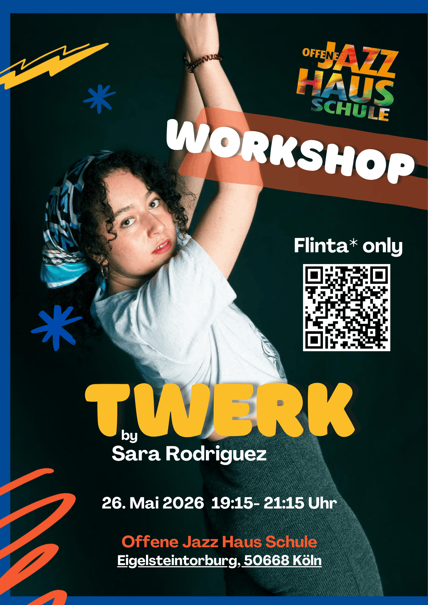 Wir freuen uns sehr, die Sozialarbeiterin und Tänzerin Sara Rodríguez (M.A. Internationale Soziale Arbeit) für diesen besonderen Workshop begrüßen zu dürfen. In ihrer künstlerischen Forschung beleuchtet Sara das Potenzial des Tanzes für gemeinschaftsbildende Prozesse und die kollektive Erinnerung innerhalb migrantisierter Communities.